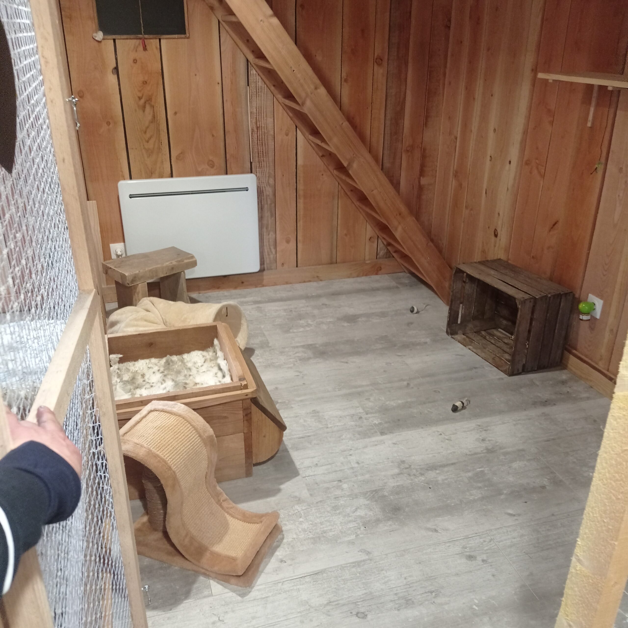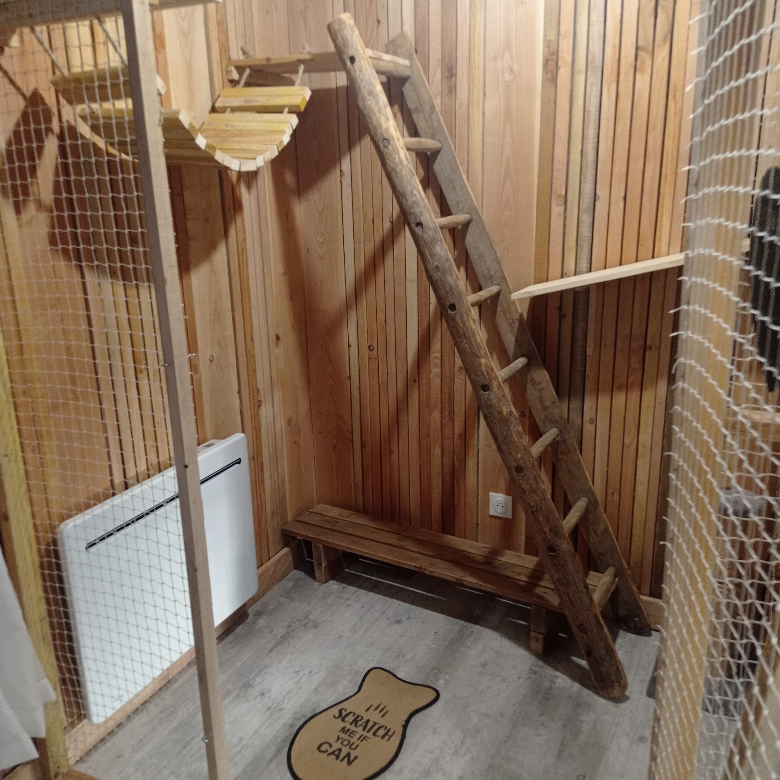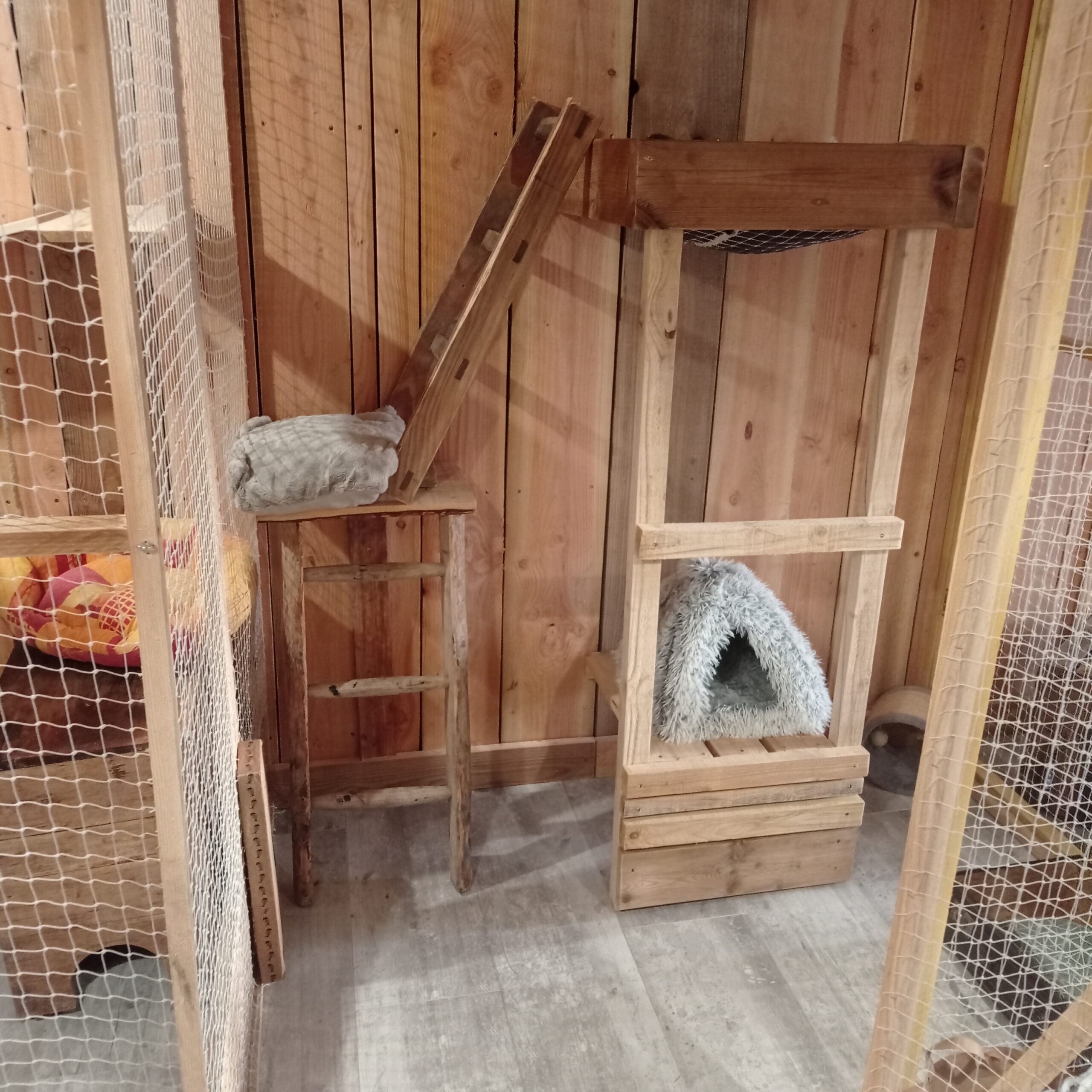 Chez Entre Chats, chaque pensionnaire bénéficie d’un espace individuel sécurisé et aménagé pour son confort.