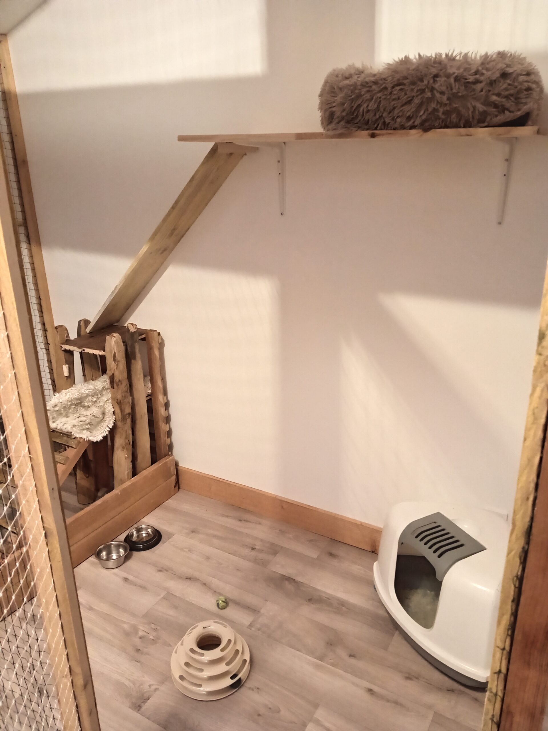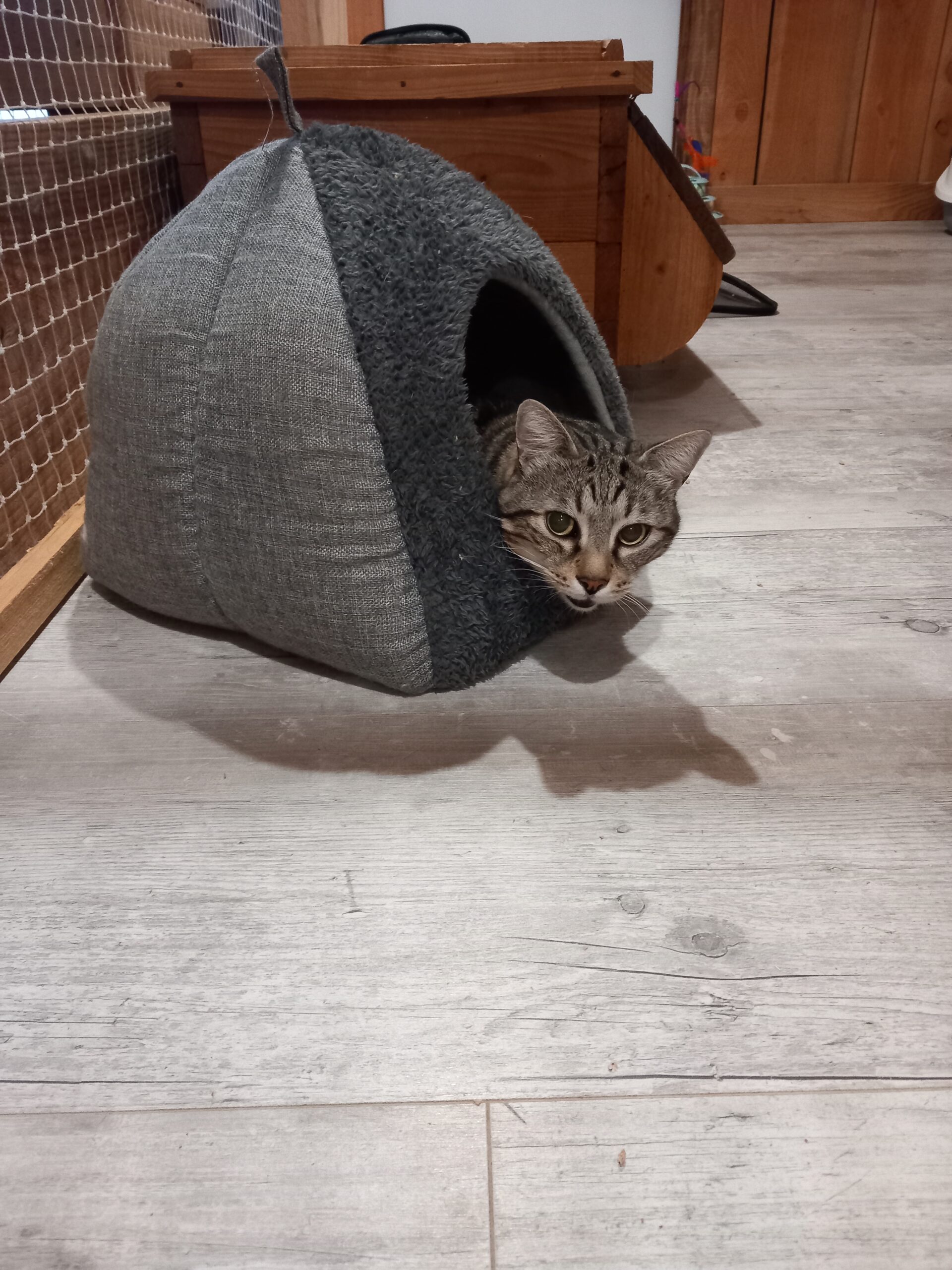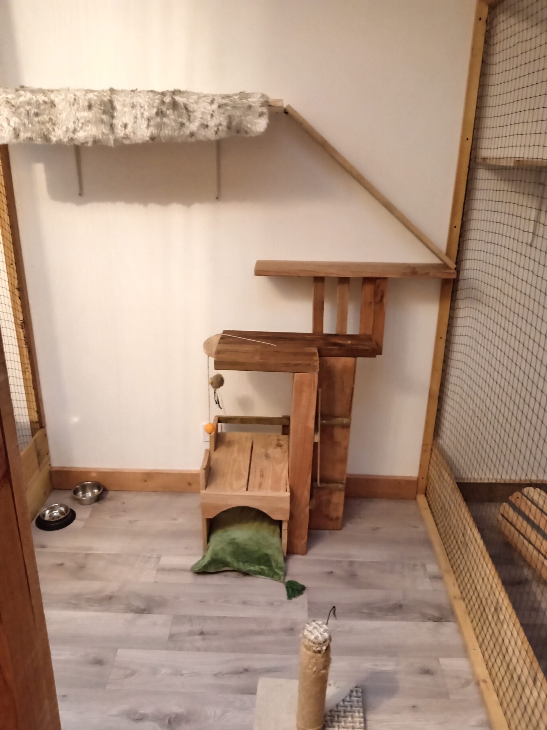 Chez Entre Chats, chaque pensionnaire bénéficie d’un espace individuel sécurisé et aménagé pour son confort.